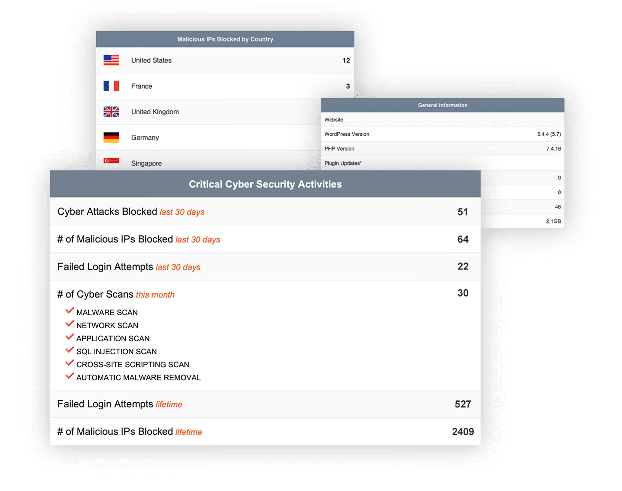 Some of the security items detailed in the report included any cyber-attacks that were blocked; the number of malicious IPs blocked; the number of failed login attempts; and, the number of cyber scans for that month. In addition, the report will detail the website maintenance work that was completed for that month; the web operations work that was completed, along with backup and tracking data; and, an FAQ section.